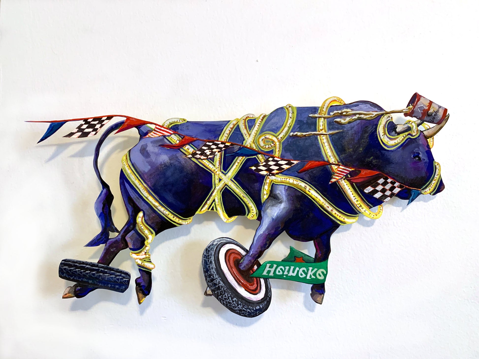 RUN! 8, oil on paper cutout, 2020 7" x 13"